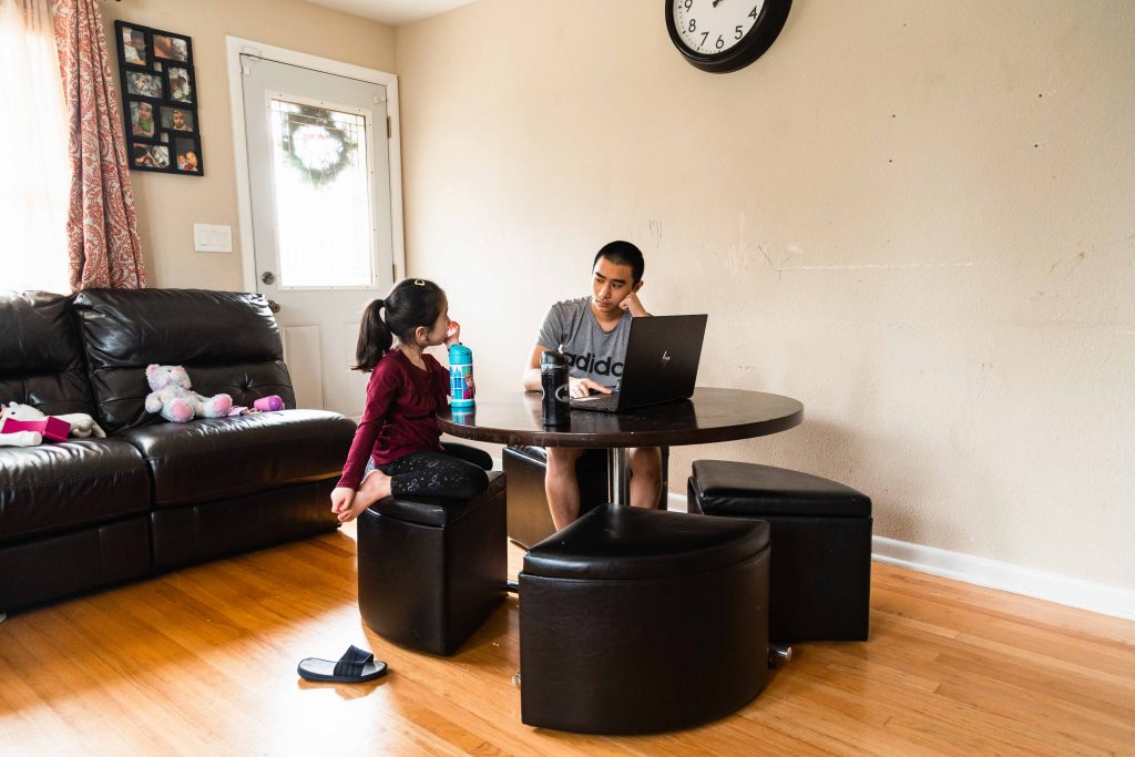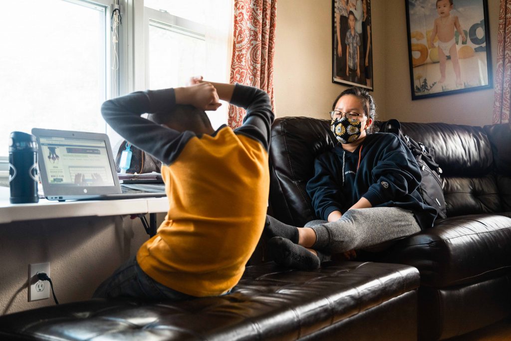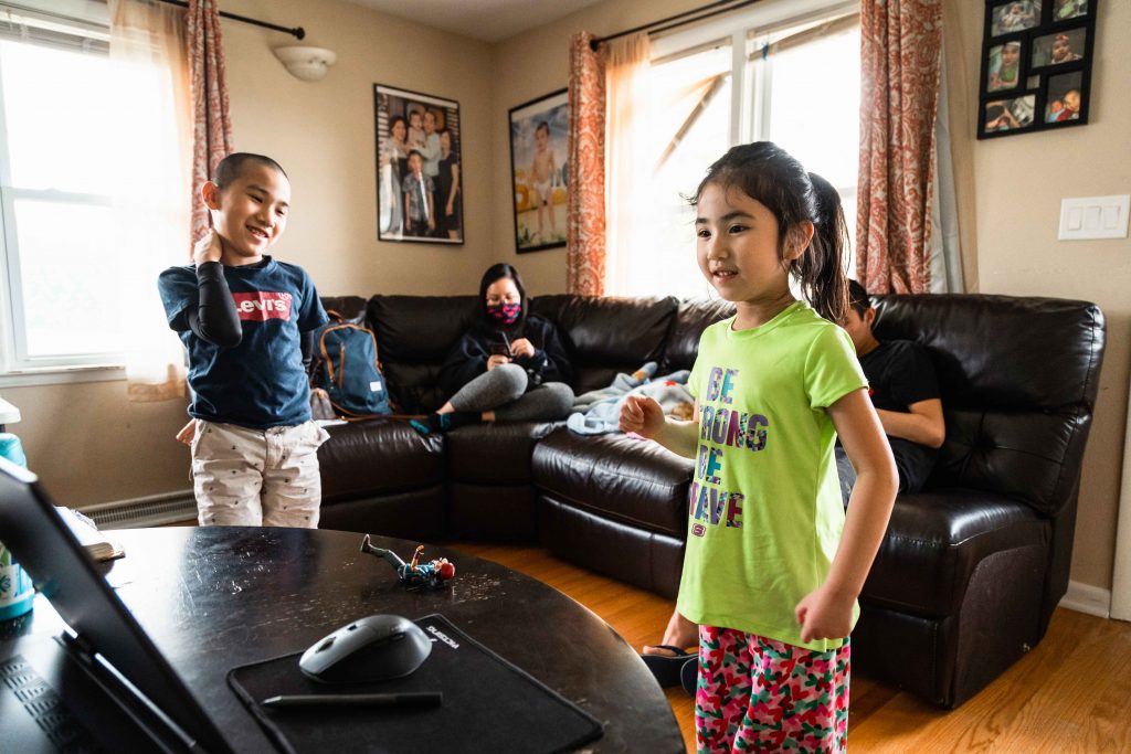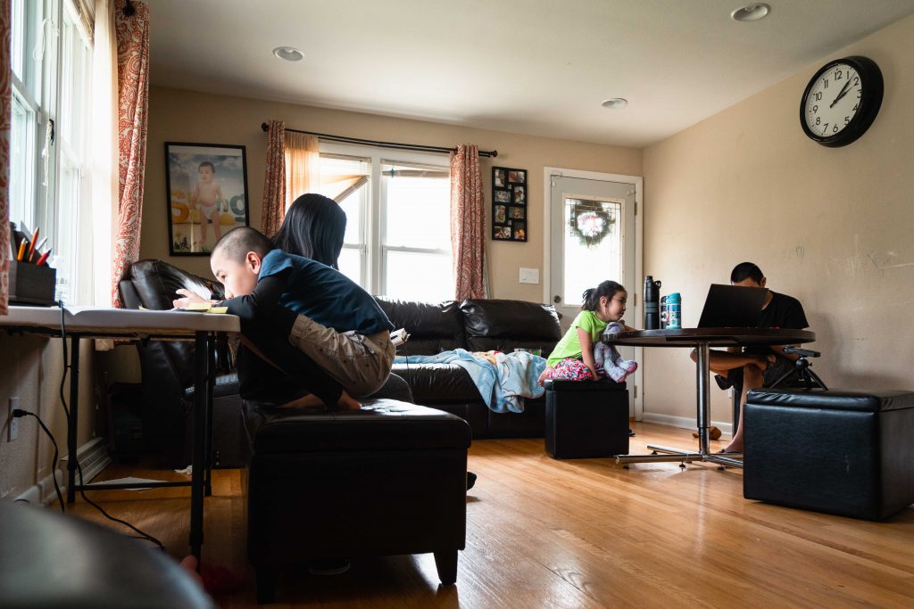For the next few hours, Skyler will stare at the dim screen from the leather ottoman bench tucked under the lip of the white makeshift desk. To his right, his cousin Linda Huynh acts as his tutor behind a cloth face mask she sewed after months of boredom. It’s a role she reluctantly accepted along with Skyler’s uncle, Vanchhoeng, who is making the best of his freshman year of high school in an adjacent bedroom. He’ll have to battle through the constant noise of running water, traffic speeding past the living room windows and of course, his restless kindergarten student and niece, Sofia. She will run and scream through the house to pass the hours until it’s her time to learn.