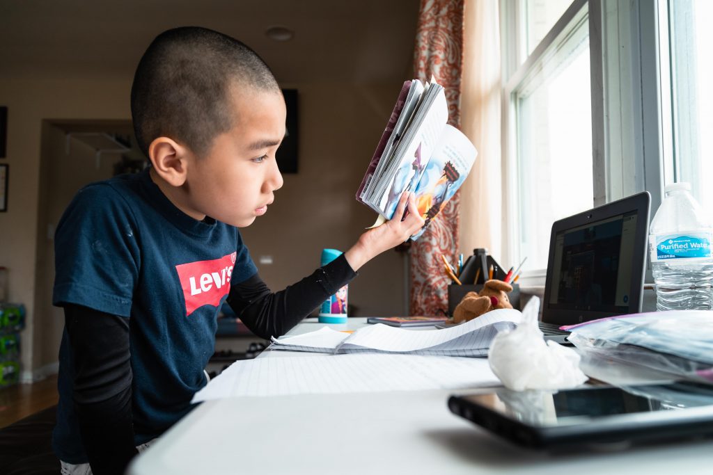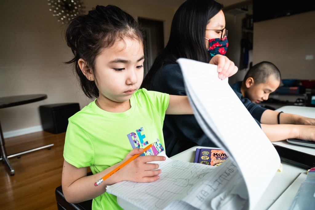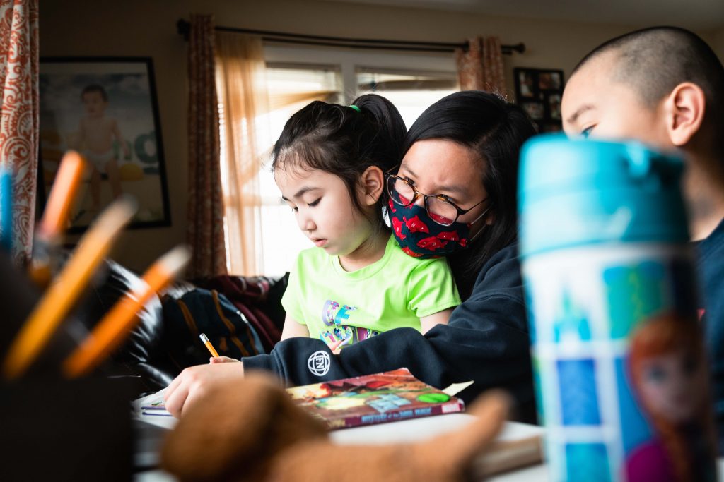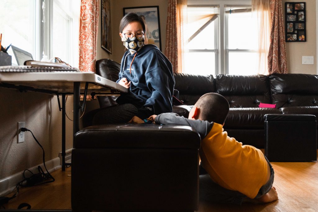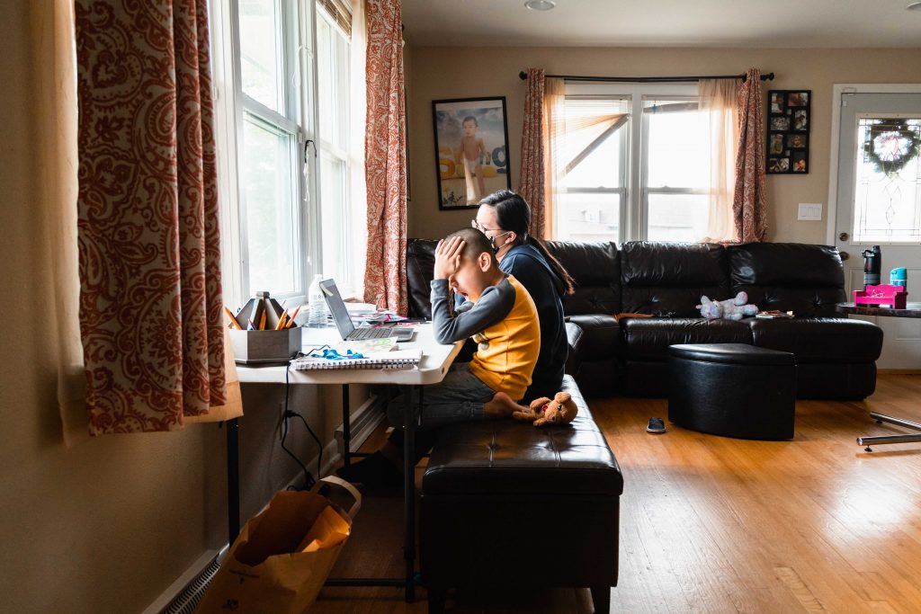 For the next few hours, Skyler will stare at the dim screen from the leather ottoman bench tucked under the lip of the white makeshift desk. To his right, his cousin Linda Huynh acts as his tutor behind a cloth face mask she sewed after months of boredom. It’s a role she reluctantly accepted along with Skyler’s uncle, Vanchhoeng, who is making the best of his freshman year of high school in an adjacent bedroom. He’ll have to battle through the constant noise of running water, traffic speeding past the living room windows and of course, his restless kindergarten student and niece, Sofia. She will run and scream through the house to pass the hours until it’s her time to learn.
