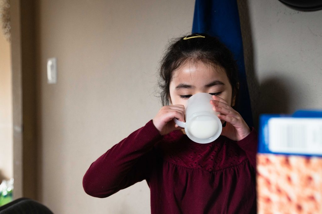 Once the kids are done, they have a cup of milk while their mom heads to the nail salon to start her eight-hour work day.
