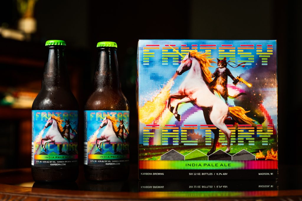 Based in Madison, Karben4 beer is a staple in fridges and grocery stores across Wisconsin. One of its most popular brews, the Fantasy Factory IPA, features a label with a cat riding a unicorn. These types of quirks are what make Karben4 unique — the brewery doesn’t shy away from anything bizarre or amusing. In addition to an eccentric tap list and playful branding, Karben4 emphasizes community connections between local businesses — which is what inspired Koga to plan a COVID-19-safe drive-up taproom.