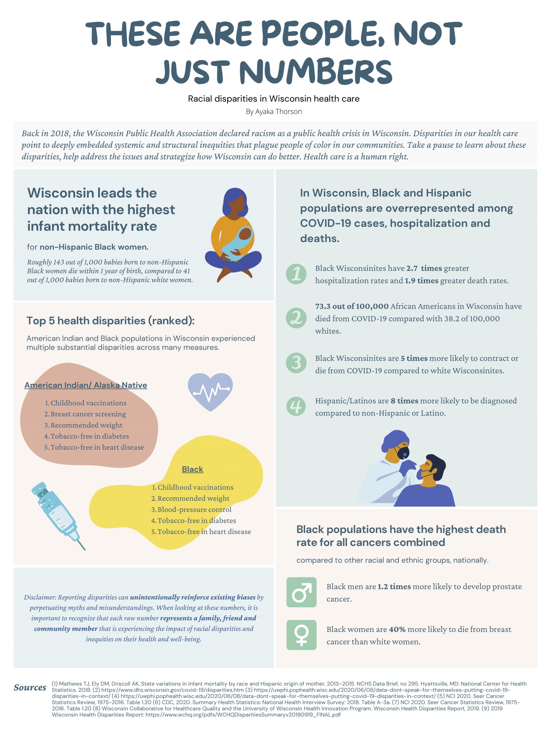 Across the country, the coronavirus has exposed long-standing systemic health and social inequities in American society — Wisconsin is no exception. Black Wisconsinites are about five times more likely to be diagnosed or die from COVID-19 compared to white Wisconsinites, according to the UW Population Health Institute. Two years before the pandemic, the Wisconsin Public Health Association declared racism as a public health crisis in Wisconsin.